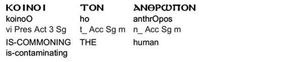 Moreover, it is of note that the adjective κοινός/koinos is only attributed to objects, and that these “common” or “shared” objects are not credited with the unconditional ability to “defile” or “make unclean,” as translators also suggest when interpreting the Greek verb κοινόω/koinoō39. In further emphasizing communal connotations and links between κοινός/koinos and κοινόω/koinoō, it becomes evident that Yeshua’ use of the verb κοινόω/koinoō in the Mark 7 account has more to do with “making common” and less to do with corrupting or polluting. Of course, by implication, the verb κοινόω/koinoō strongly implies to “make unholy,” as the term “holy” refers to something that is “set apart,” which is the very opposite of something that is “common,” “shared,” or “public.” Therefore, it would be appropriate to suggest that Yeshua said that nothing “common” (κοινός/koinos) is capable of “commoning” (κοινόω/koinoō), i.e., making people “common” or “unholy.” Thus, the New Testament indicates that people are not to be described as common (κοινός/koinos), 40 and that people could not be made unholy (κοινόω/koinoō) spiritually from encountering something that is common.