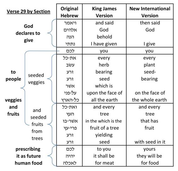 Table 2a— Genesis 1:29 Translations: Vegan Variations