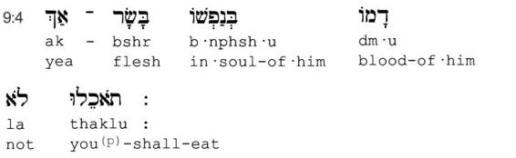 Only the flesh with another’s blood in its soul do not eat. (Gen. 9: 4 AHT)160