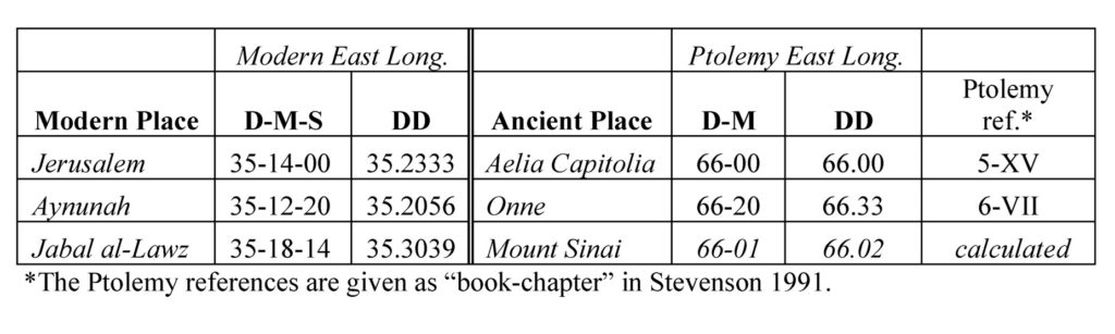 Table 1. Ancient and Modern Longitudes of Jerusalem and Jabal al-Lawz.