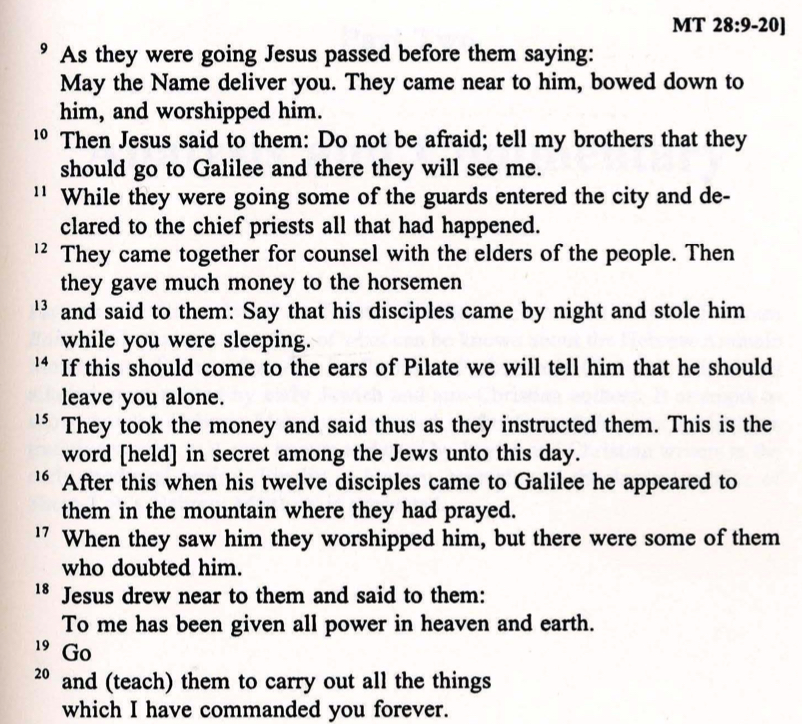 But the problem is that this Bible verse was actually added deliberately to the Bible by the Catholic Church. This Bible verse does not exist in the original Hebrew text of the Gospel of Matthew. This means: The Catholic Church has falsified the Bible to support its own interests. The Trinity is therefore not a biblical teaching, but merely invented by the Church. You don’t have to believe me, you can examine it yourself. Here is the original version of the Hebrew Gospel of Matthew translated to English: